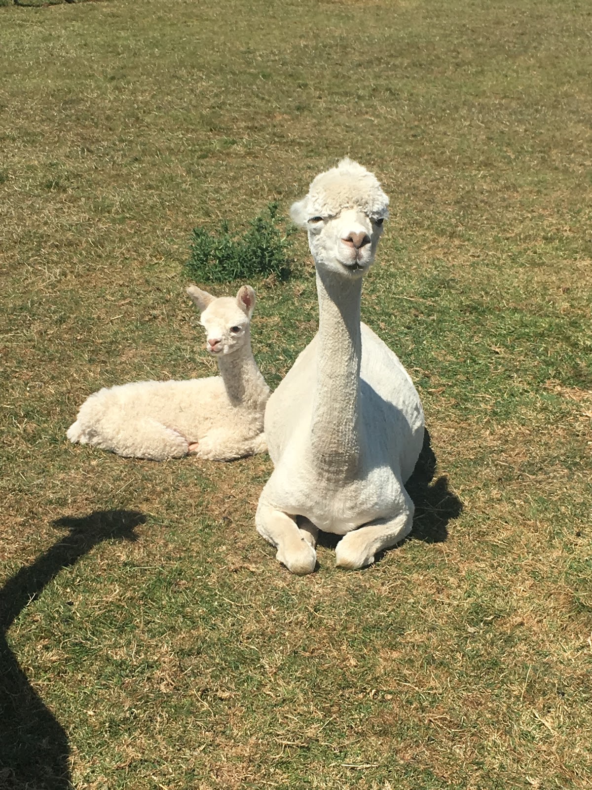 Not expected for another three weeks this little girl was indeed a surprise in the field last Thursday. She needs to be a fighter as mum had no milk production and despite injections to bring her milk in nothing has happened. On Friday we went to the vets with mum to have a plasma transplant to try and give her the antibodies she needs from mum. They had to spend the night there as mum's blood took along time for the plasma to settle out. The cria has had three days of antibiotics and is on six feeds a day at thee hourly intervals , starting at 7a.m. And finishing at10p.m. She's weighed 4.5 kg. Then on Sunday we had a 9kg girl cria. Looking like little and large in the field.